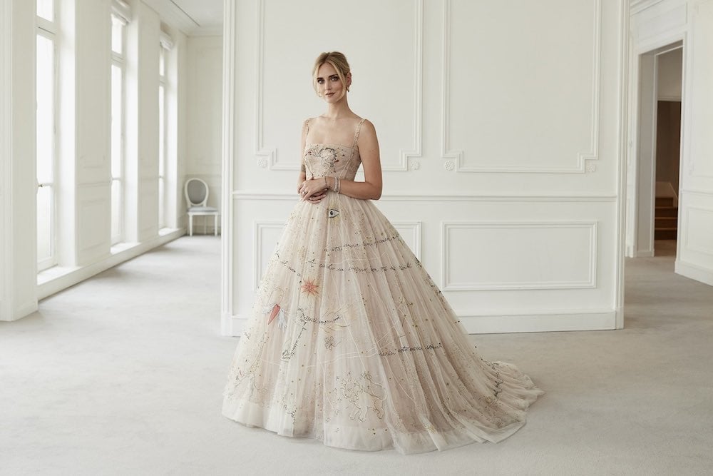 從選定 Dior 品牌的 Maria Grazia Chiuri 所設計的婚紗,一直到兩人搭上了專屬飛機,在機上除了有訂製的婚禮小物、Chiara Ferragni 及 Fedez 的裝扮人偶外,在婚禮前夕的晚會上,Chiara Ferragni 更穿上了 Prada 的訂製小禮服,將選定的 Palazzo Ducezio 教堂打造成百花盛開、蠟燭和燈飾點綴的絕美禮堂。
