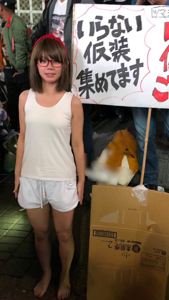 ▼有趣的是還有一位女孩只穿了白色背心和居家短褲,赤腳在澀谷街頭徵求:「收集大家不要的變裝道具。」沒想到這位女孩在幾分鐘之內就收到了各式各樣奇怪的物品,甚至有人還給了她 500 日幣。